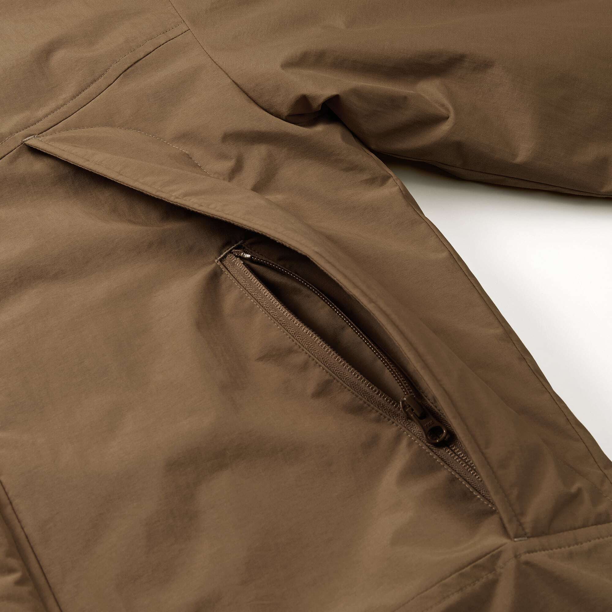 中綿入りでボリュームのあるシェル パーカには、細かいこだわりが満載!